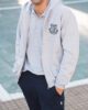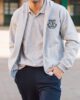 Chomba manga corta. Dos botones en carterita. Cuello y puño gris melange con vivo francia y verde. Bordado en frente izquierdo EES Nº20