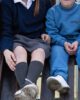 Color: azul marino con tira tejida gris melange con vivo azul