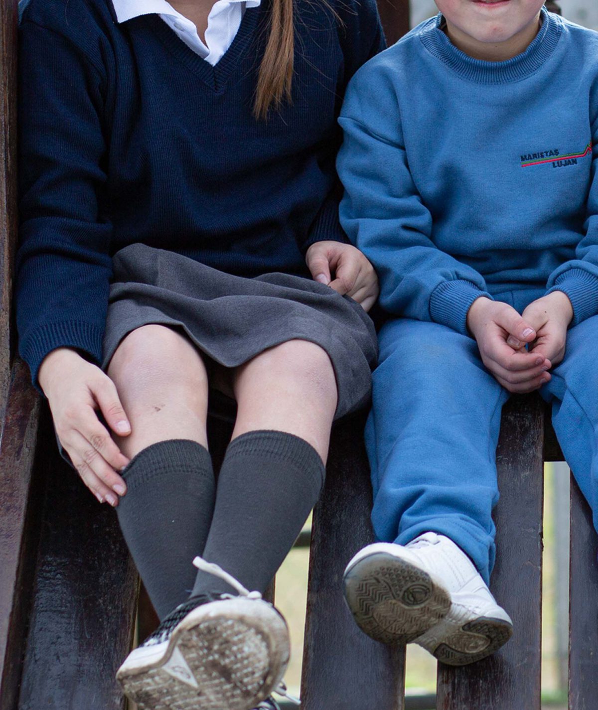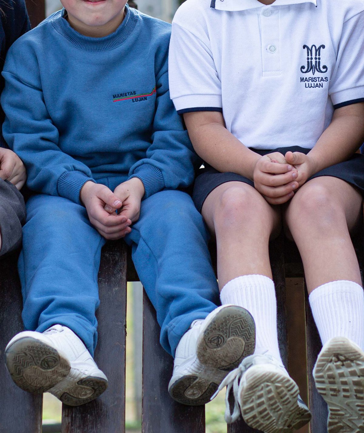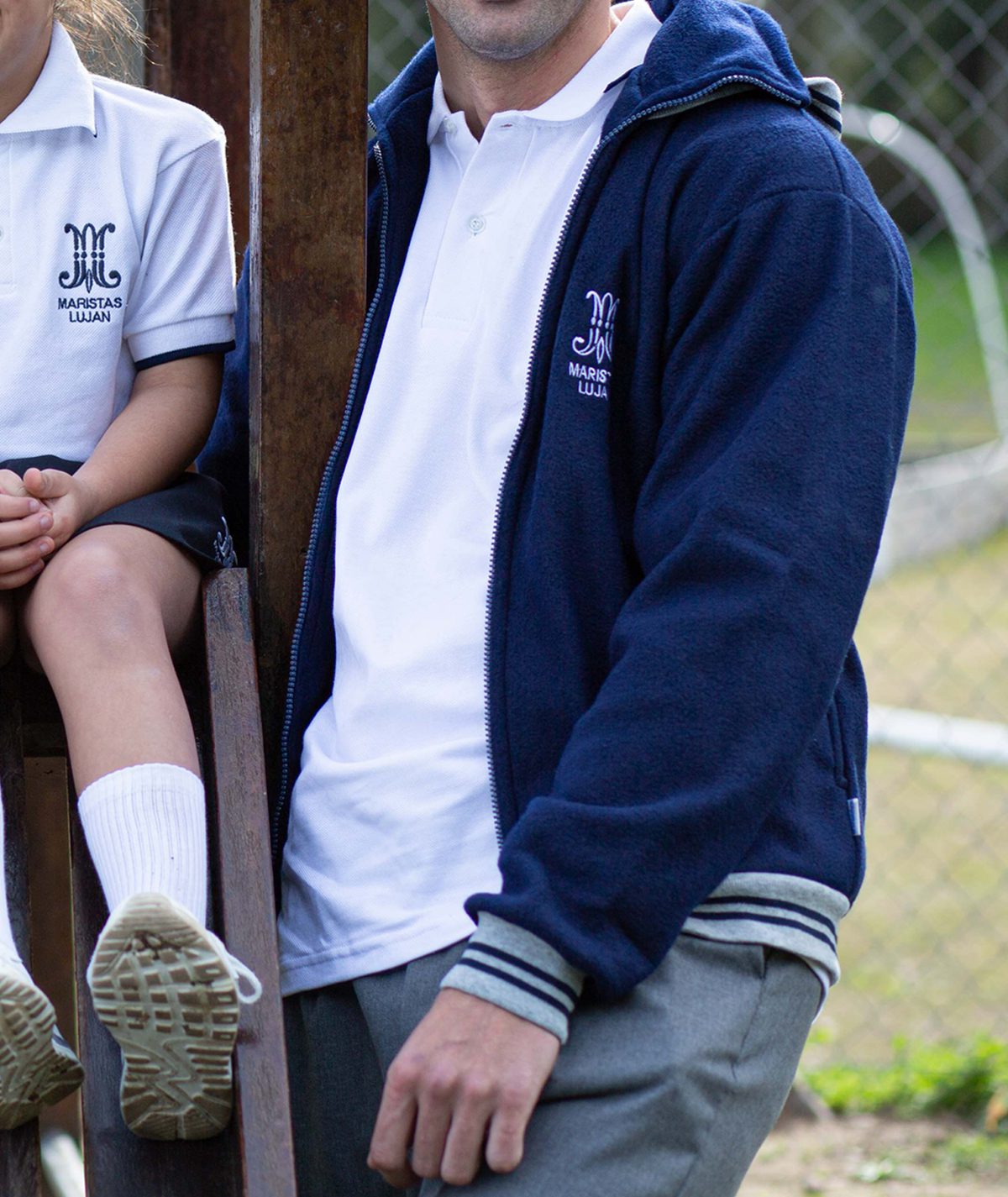 Buzo de frisa cuello redondo. Bordado MARISTAS en frente izquierdo