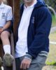 Campera de polar con capucha. Tira de capucha, puños y cintura tejida gris melange con vivo azul. Bordado MARISTAS en frente izquierdo